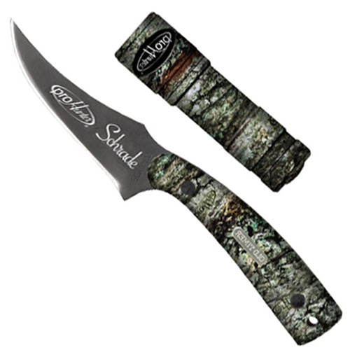 Schrade Sharpfinger Camo Handle Black Blade Camo Flashlight with Nylon sheath Clam Pack Fixed Blade Knife