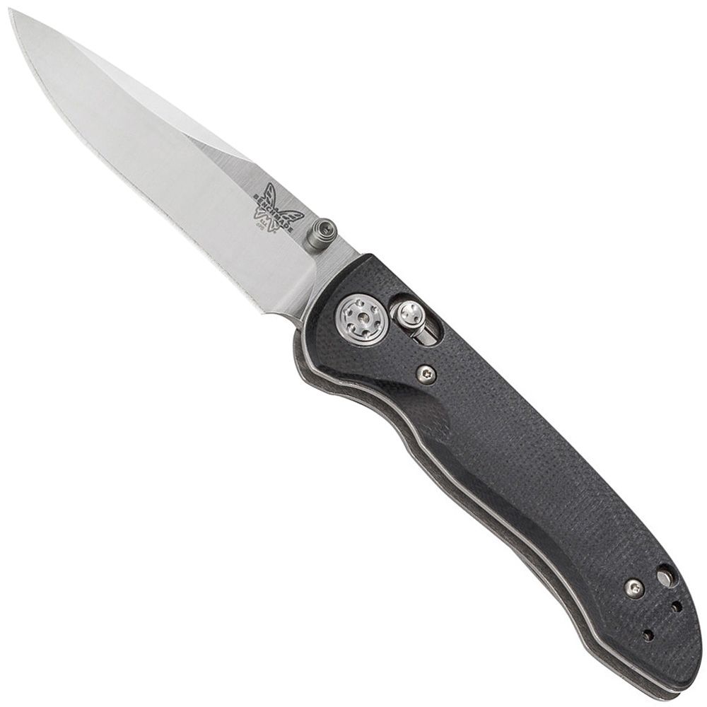 Much like its popular predecessor, the 698 offers gent-styling in a larger overall profile, translating to improved handling and all-around utility. Add some class to your everyday carry knife collection with the elegant Benchmade Foray. This gentlemans folding knife has a sleek profile and is large enough for comfortable handling and utility tasks. The black G-10 handle is contoured for a secure grip and has stainless steel liners, while the versatile drop point blade is satin finished to perfection. Includes a deep-carry pocket clip and lanyard hole. Measures 185 mm (7.32 inches) in overall length.