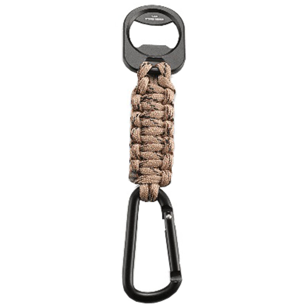 You never know when trouble will hit. Best to be prepared with the Tom Stokes-designed paracord accessory. It features a bottle opener and three-foot length of paracord in black or tan on a non-load-bearing carabiner to clip to your pack.