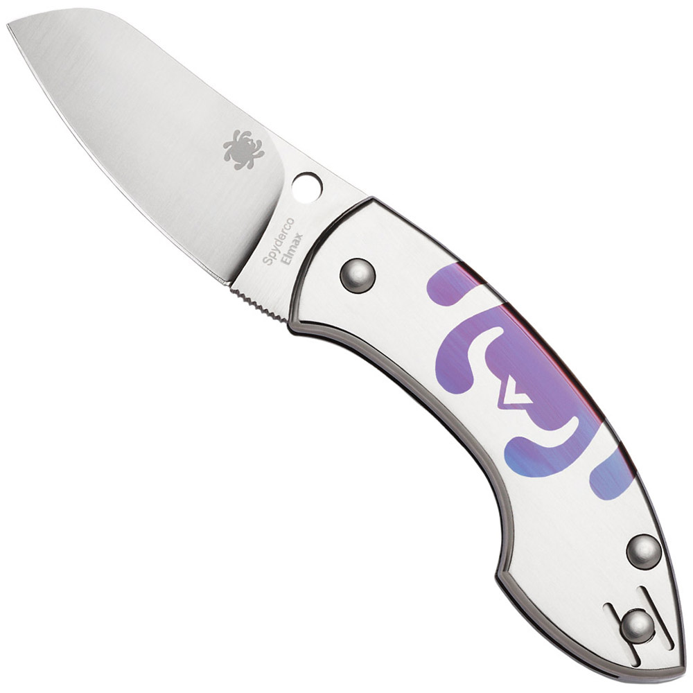 Designed by Danish custom knifemakers Jens Anso and Jesper Voxnaes, the Pingo was specifically developed to conform to the knife laws of Denmark, which prohibit both lock-blade folding knives and all forms of one-hand-opening knives. This limited edition Sprint run of the Pingo elevates its proven design with the addition of premium solid titanium handle scales. The scales are meticulously machined and polished to a handsome satin finish. They are then embellished with a color-anodized blue Spyderco “bug” that embraces the back of the handle and proudly announces its brand identity. The titanium Pingo’s PlainEdge™ blade is precision ground from premium Elmax powder-metallurgy stainless steel and has a full-flat grind for superior edge geometry and low-friction cutting performance. Its Trademark Round Hole makes two-handed opening much easier than a traditional nail nick and is further evidence of the knife’s Spyderco pedigree. A full-length spring in the back of the handle powers the knife’s notched-joint mechanism, which reliably holds the blade open during use, but does not lock. A reversible wire clip completes the package, allowing convenient left or right-side tip-up carry and making both carry and operation of this unique expression of the Pingo completely ambidextrous.